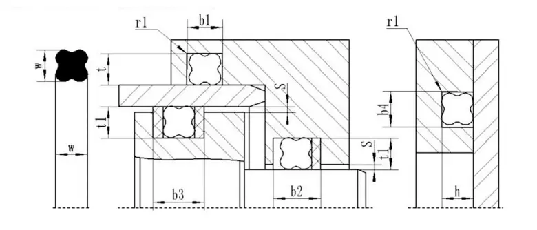 1. Bagian -bagian tempat cincin penyegelan dipasang atau dilewatkan harus halus, bebas dari gerinda, alur, dan sudut tajam. Kekasaran lubang dalam harus mencapai 1.6μ dan kekasaran poros harus mencapai 0.8um.