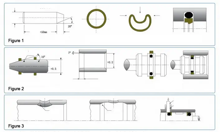 4. Benang, alur cincin pemandu, dll. Harus ditutup, karena segel tidak dapat didorong melalui alur, lubang yang dibor atau permukaan kasar.