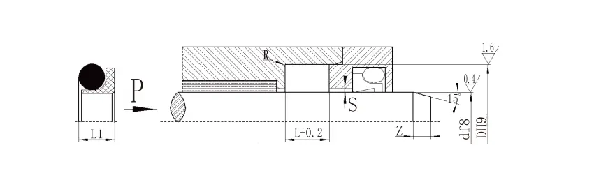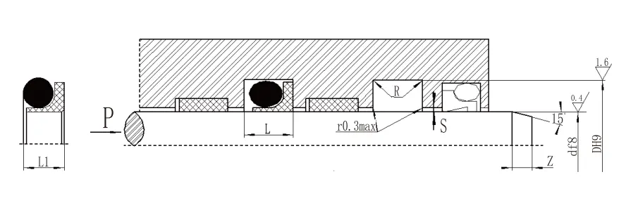 | 2. Untuk pemasangan segel alur integral (tertutup), silakan merujuk ke panduan instalasi perusahaan kami. 3. Untuk tekanan> 40MPA, area akar segel menggunakan toleransi pas H8/F8. | ||||||||||
