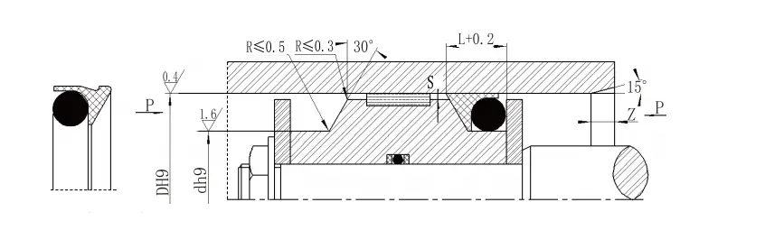 | Catatan: 1. Untuk tekanan> 60mpa, area root seal menggunakan toleransi pencocokan H8/F8, dan segel tekanan ultra-tinggi SMAX <0,05. 2. Untuk diameter silinder> 30mm, dapat dipasang di alur tertutup. Silakan berkonsultasi dengan perusahaan kami. | ||||||||||