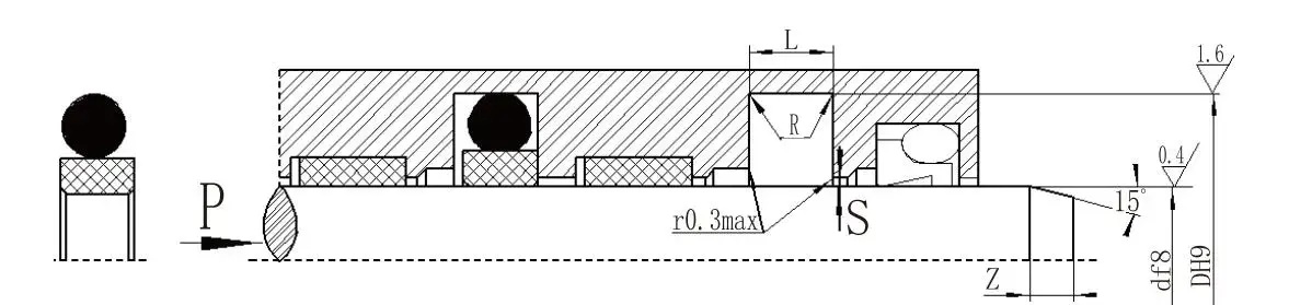 Cincin Glyd untuk poros terdiri dari cincin penyegel persegi panjang berisi PTFE dan cincin-O, cocok untuk penyegelan tekanan dua arah dalam aplikasi hidraulik bolak-balik. O-ring memberikan gaya radial dan mengkompensasi keausan cincin seal. Biasanya digunakan bersama dengan cincin pemandu. Alur terpisah (terbuka) sebaiknya digunakan untuk diameter batang kurang dari 30mm.