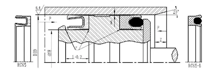 RC65-B-40-PTFE4+R02: Diameter lubang 40, bahan cincin penyegel adalah PTFE4, O-ring terbuat dari fluororubber.
