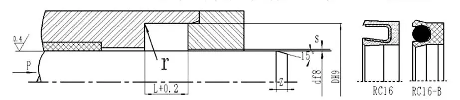 Segel berenergi pegas RC16 terdiri dari pegas baja tahan karat dan plastik berkinerja tinggi. Pegas baja tahan karat dapat berupa pegas berbentuk V atau O. Saat menggunakan RC16-B, bahan elastomer yang sesuai harus dipilih.