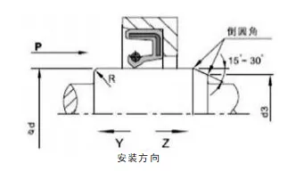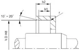 2. Desain Poros dan Alur Berputar: Permukaan poros harus halus dan bebas duri. Tanda pemesinan spiral dapat menimbulkan efek pemompaan, yang menyebabkan kebocoran. Direkomendasikan agar area pemasangan segel oli digiling hingga kekasaran permukaan Ra0,1-0,5µm, menjadi lebih halus seiring dengan meningkatnya kecepatan. Untuk kemudahan pemasangan dan pembongkaran, poros dan alur harus dirancang dengan talang atau tepi membulat Lihat Gambar 1 dan 2.