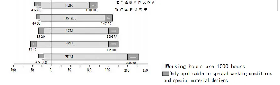 Ada puluhan faktor yang mempengaruhi efek penyegelan. Selain segel oli itu sendiri, seperti bahan dan strukturnya, faktor lain seperti media, suhu, tekanan, pelumasan, kecepatan, dan kekasaran permukaan juga secara langsung mempengaruhi efek penyegelan, dan faktor-faktor ini sering kali berinteraksi satu sama lain. Bagan berikut hanya untuk referensi pengguna.