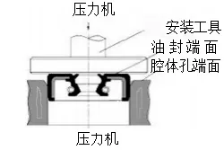 Metode ini hanya berlaku jika permukaan ujung segel oli dan permukaan ujung rongga rata. Ketika peralatan pengepres beroperasi dengan cepat, segel oli harus ditempatkan dengan benar; jika tidak, ketidaksejajaran dapat terjadi. |