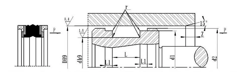 Segel piston (lubang) gabungan TPM adalah rakitan segel piston kompresi lima komponen yang terdiri dari elemen penyegel karet berprofil, dua cincin penahan, dan dua cincin pemandu. Desain alurnya secara efektif mencegah distorsi selama perakitan dan cocok untuk penyegelan piston bertekanan dua arah.