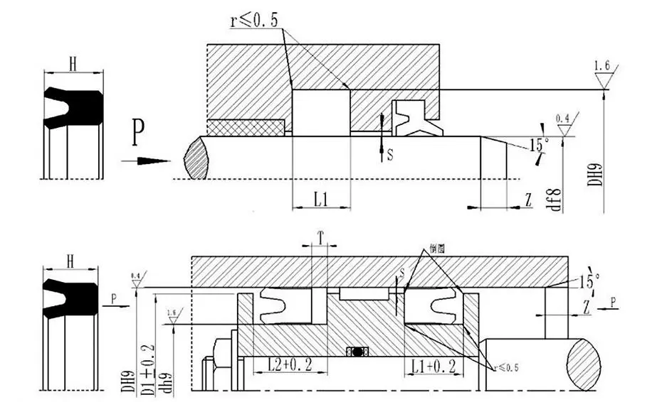 UHS U-Seal adalah seal simetris untuk aplikasi lubang dan poros. Ini memiliki penampang yang lebih kecil dan dapat dipasang di alur integral. Cincin penahan diperlukan pada akar bila digunakan pada tekanan 16-32 MPa.