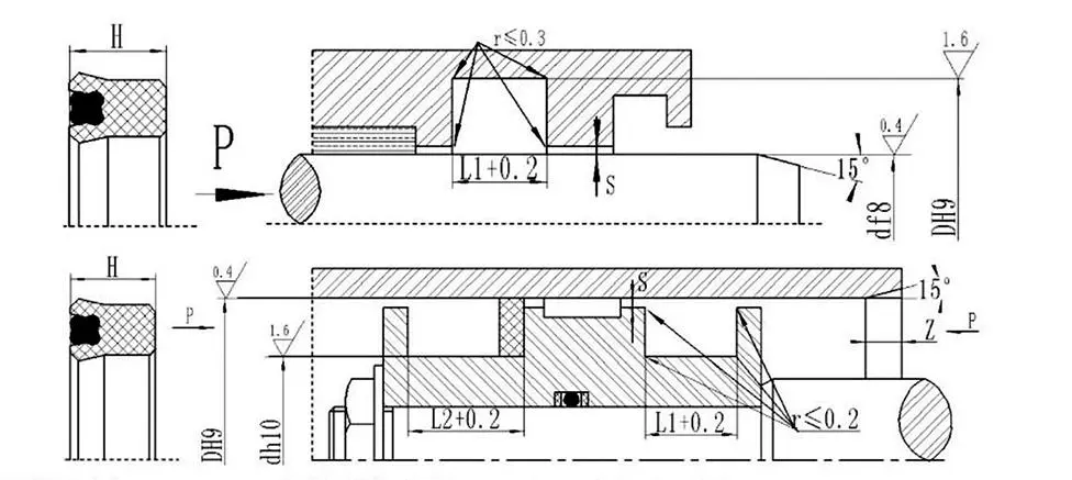 Segel Batang dan Lubang Universal Tipe VAD adalah segel simetris untuk aplikasi lubang dan poros. Ini merupakan pengembangan lebih lanjut dari segel bibir. Cincin bintang bertindak sebagai gaya radial dan mengkompensasi keausan bibir segel. Tekanan sistem disalurkan ke bibir penyegel melalui cincin bintang yang terkompresi dan berubah bentuk, menghasilkan kinerja penyegelan yang sangat baik pada tekanan tinggi dan rendah. Hal ini terutama digunakan untuk menyegel pendorong, batang piston, mesin tempa, dan peralatan hidrolik yang digunakan dalam peralatan bergerak. Bahan: Poliuretan (PU) + Karet nitril-butadiena (NBR).